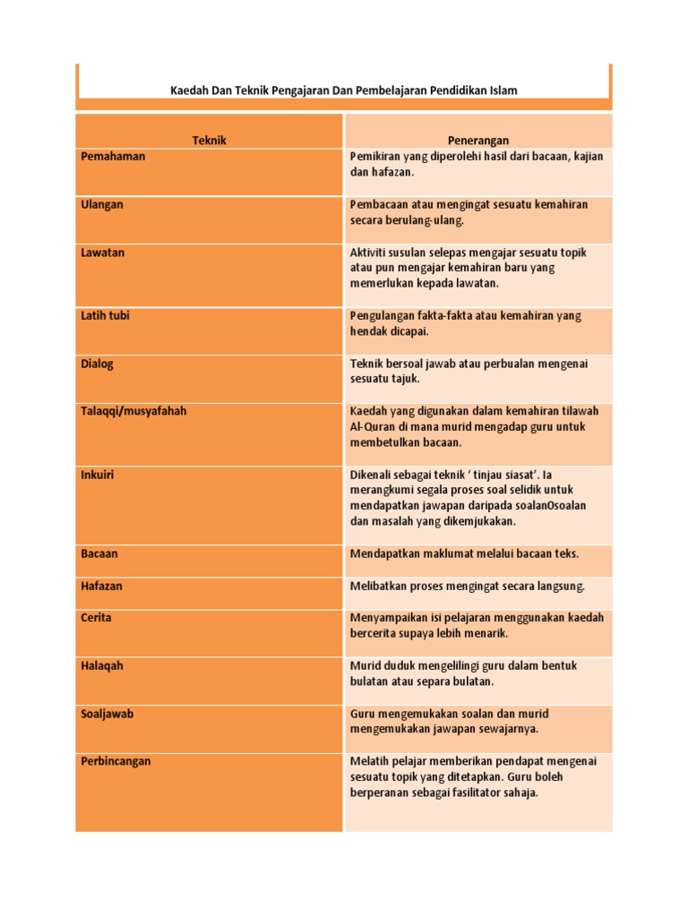 Kaedah Dan Teknik Pengajaran Pembelajaran Pendidikan Islam