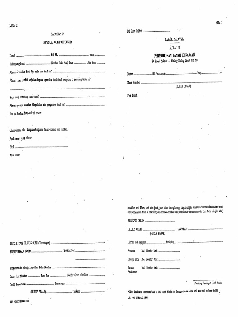 Sabah lands and surveys department wisma tanah dan ukur jalan perwira 88100 kota kinabalu sabah malaysia. Tukang Sukat Tanah Borang Permohonan Tanah Kerajaan Lsf1001 For more information and source see on this link. Permohonan Tanah Gantian Pt1600 Lot 2530 Tinggal Kenangan.