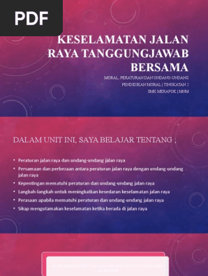 Pendidikan Moral Tingkatan 2 Keselamatan Jalan Raya Tanggungjawab Bersama