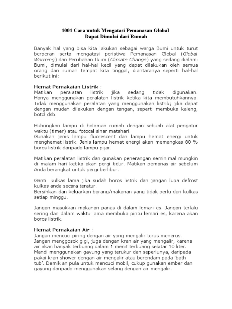 1001 Cara Untuk Mengatasi Pemanasan Global Pdf