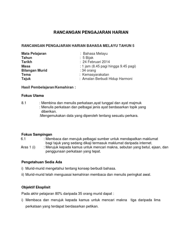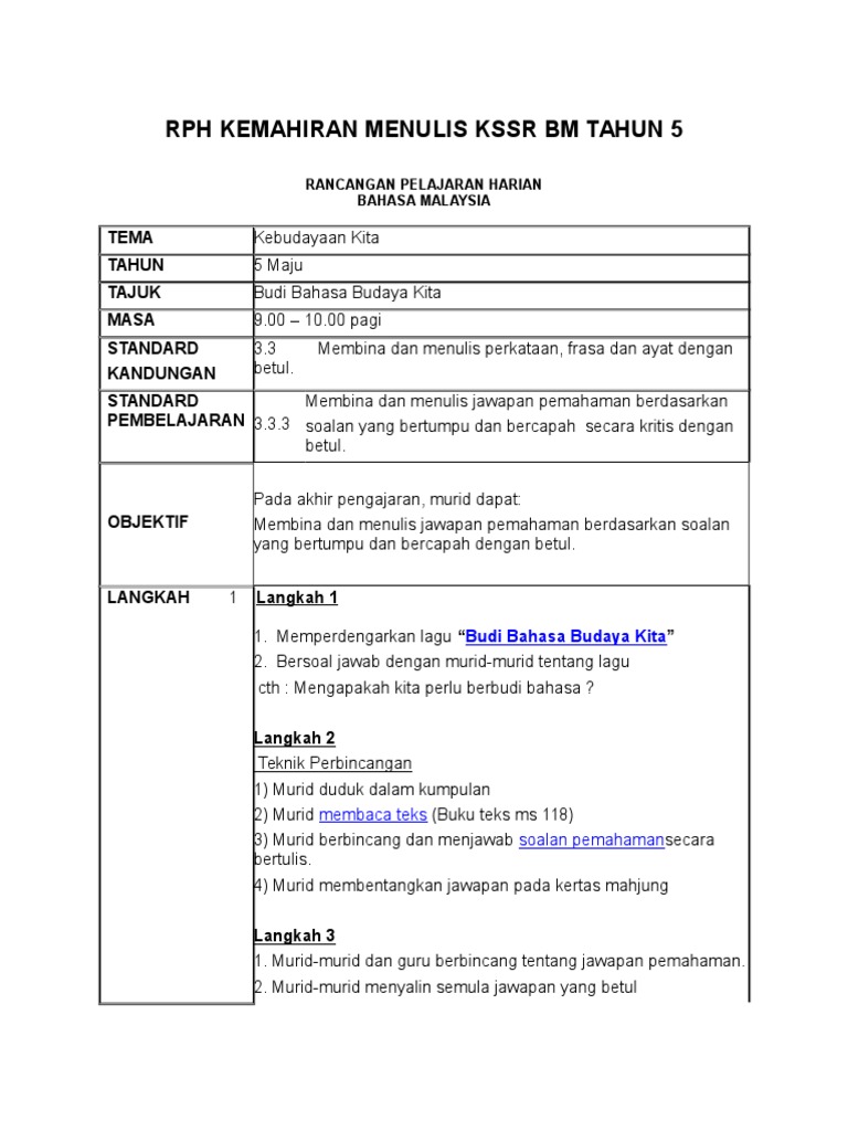 Rph Kemahiran Menulis Kssr Bm Tahun Pdf