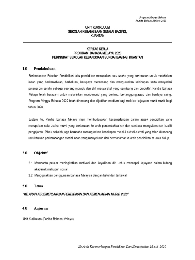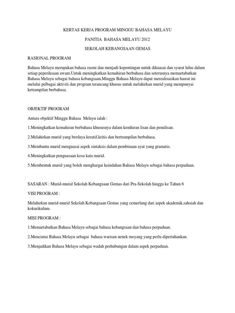 Kertas Kerja Program Minggu Bahasa Melayu Dengan Pss 2018 Pdf