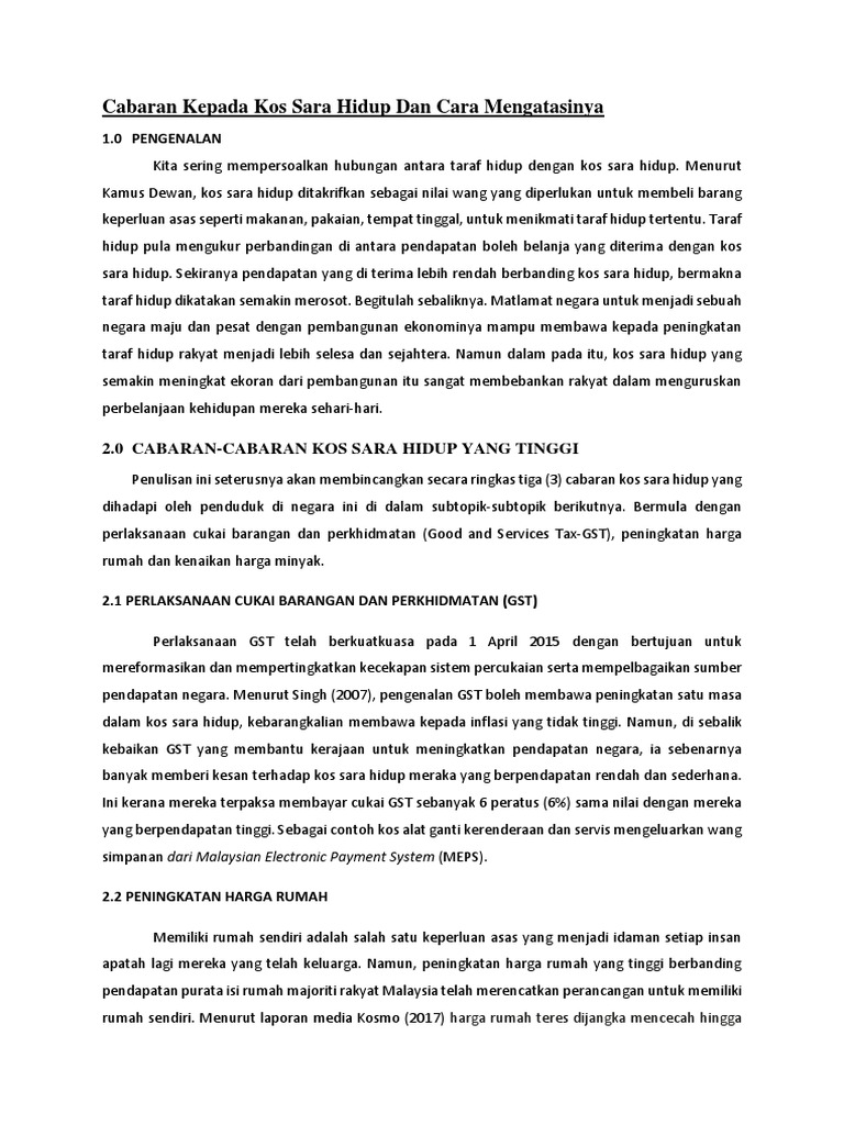 Cabaran Kepada Kos Sara Hidup Dan Cara Mengatasinya Pdf