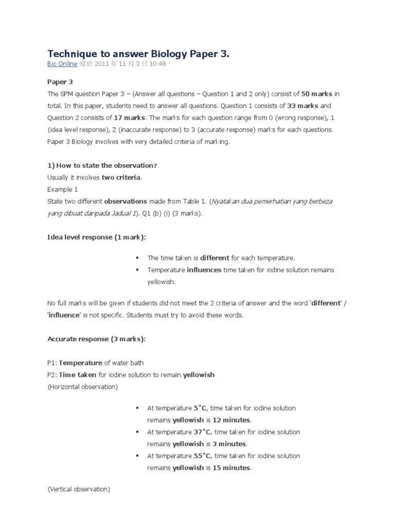 Technique To Answer Biology Paper 3 Enzyme Chemical Reactions