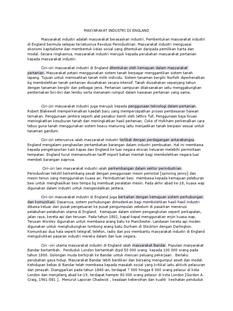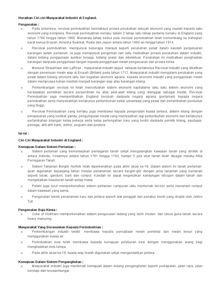 Stpm Sejarah Ciri Ciri Masyarakat Industri Di England