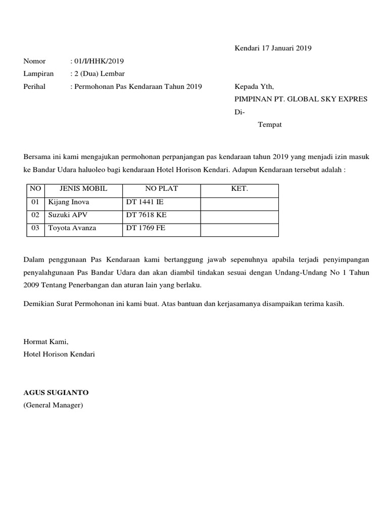Contoh Surat Contoh Surat Izin Masuk Bandara