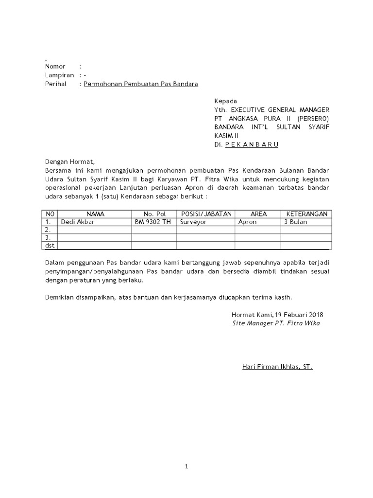 Contoh Surat Permohonan Pembuatan Pas Bandara Kumpulan Surat Penting
