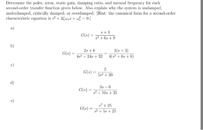 Determine The Poles Zeros Static Gain Damping Chegg Com