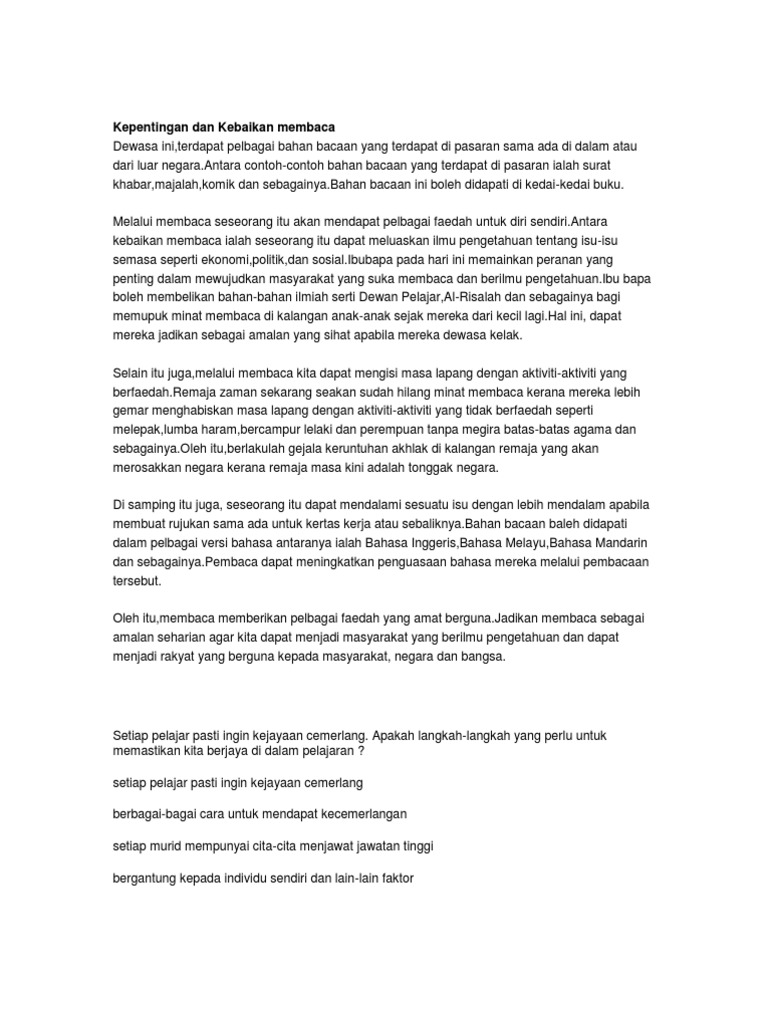 Karangan Pt3 Kebaikan Amalan Membaca Pdf