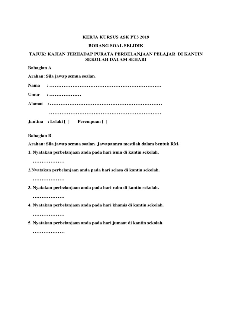 Borang Soal Selidik Sistem Pengangkutan Pt3 Idea Terkini Sheet Music Music