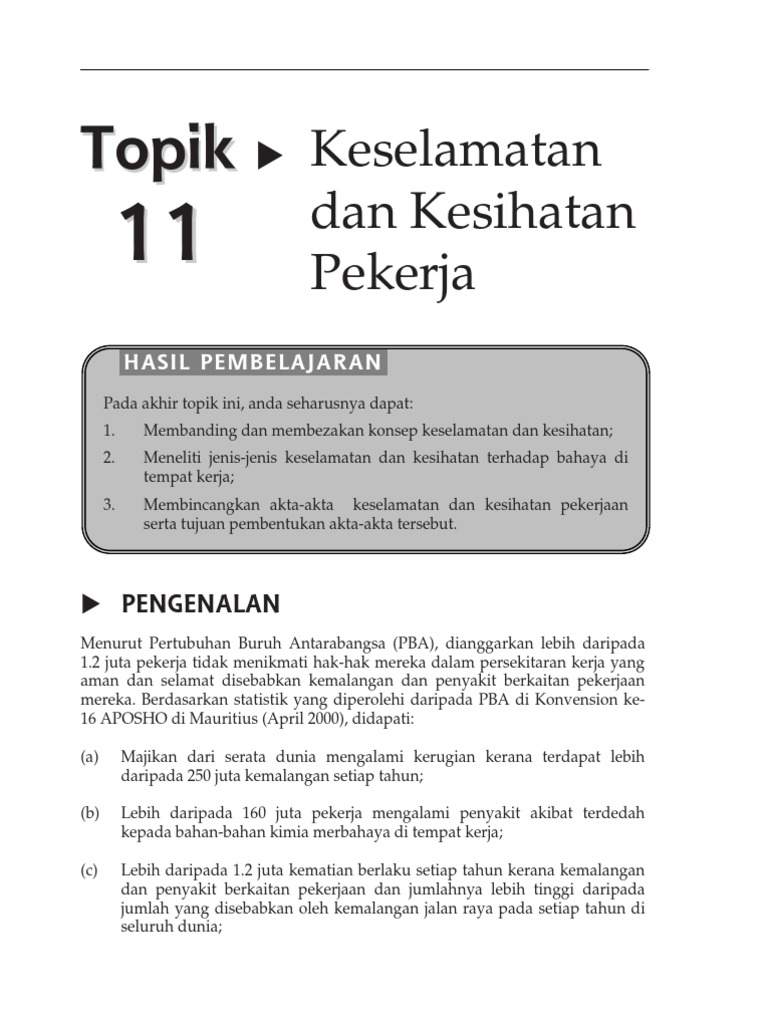Topik 11 Keselamatan Dan Kesihatan Pekerjaan