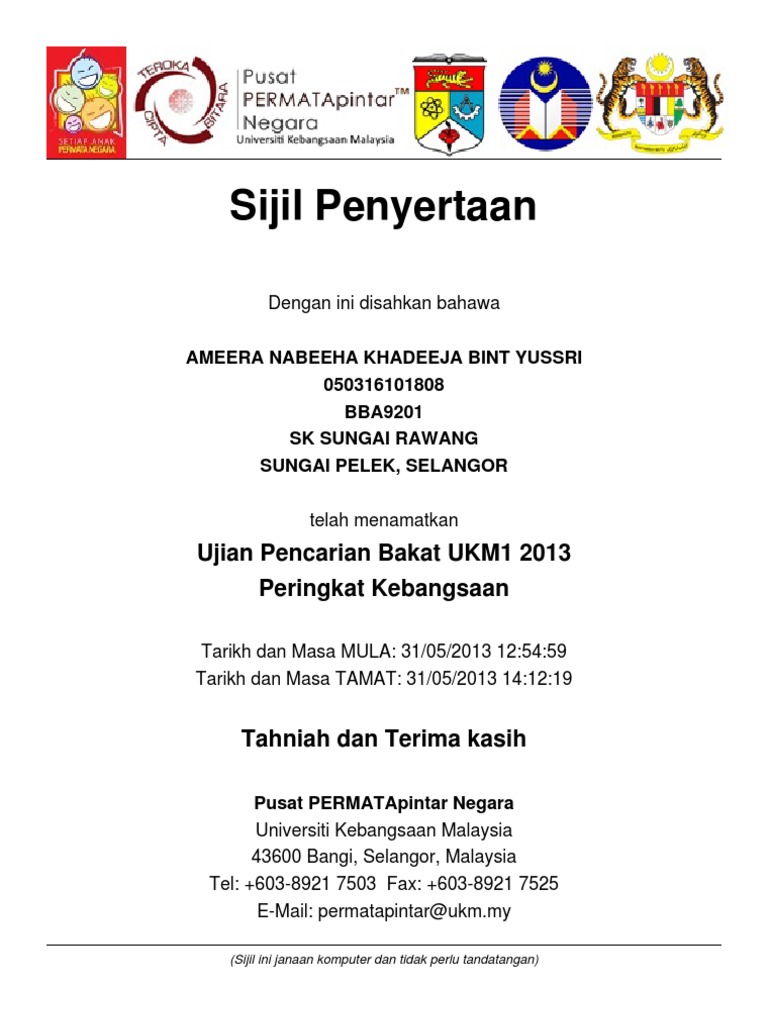Ujian Saringan Ukm1 Sudah Bermula Pusat Genius Pintar Negara Ukm