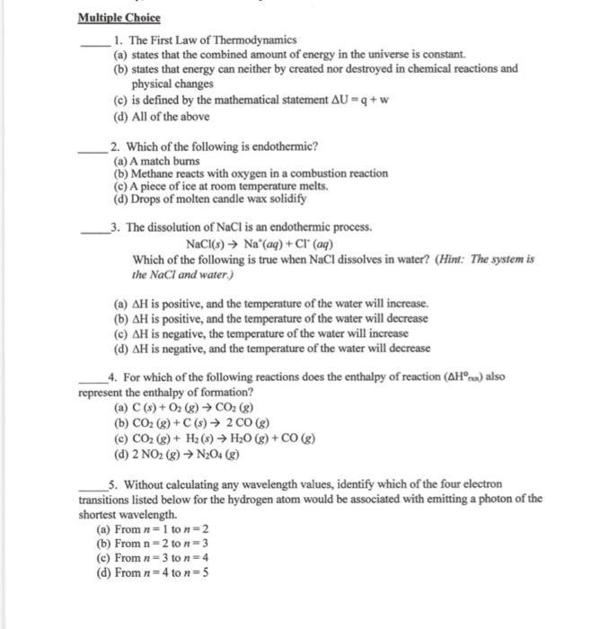 Multiple Choice 1 The First Law Of Thermodynamics Chegg Com