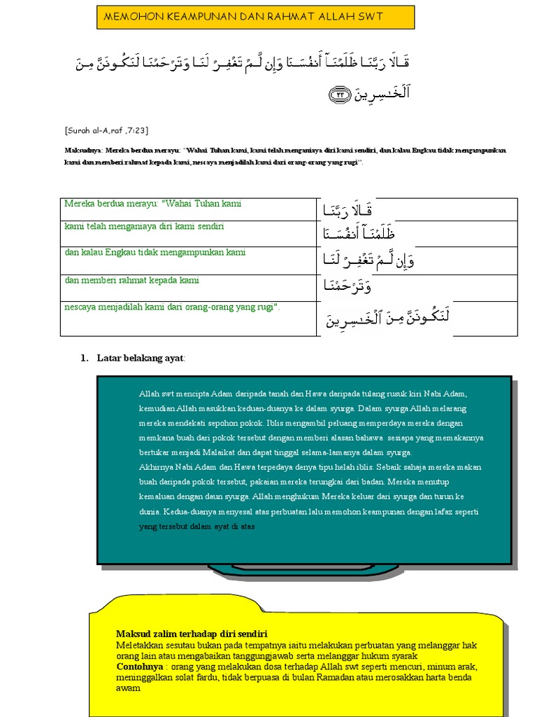 Doa Taubat Nabi Adam As Surah Al A Raf Ayat 23 Agama Kitab Allah Kekuatan Doa