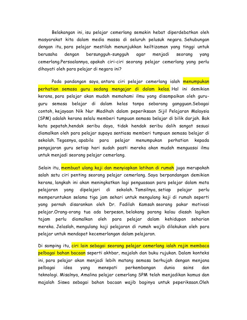 Doc Karangan Bahasa Melayu Pmr Ciri Ciri Murid Cemerlang Ciri Ciri Murid Cemerlang Lai Heng Academia Edu
