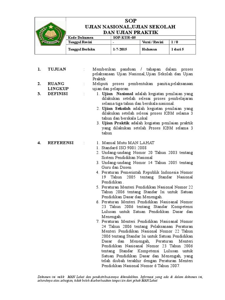 Pdf Tentang Prosedur Operasional Standar Penyelenggaraan Ujian Sekolah Madrasah Pada Sekolah Dasar Madrasah Ibtidaiyah Sekolah Ali Amin Academia Edu