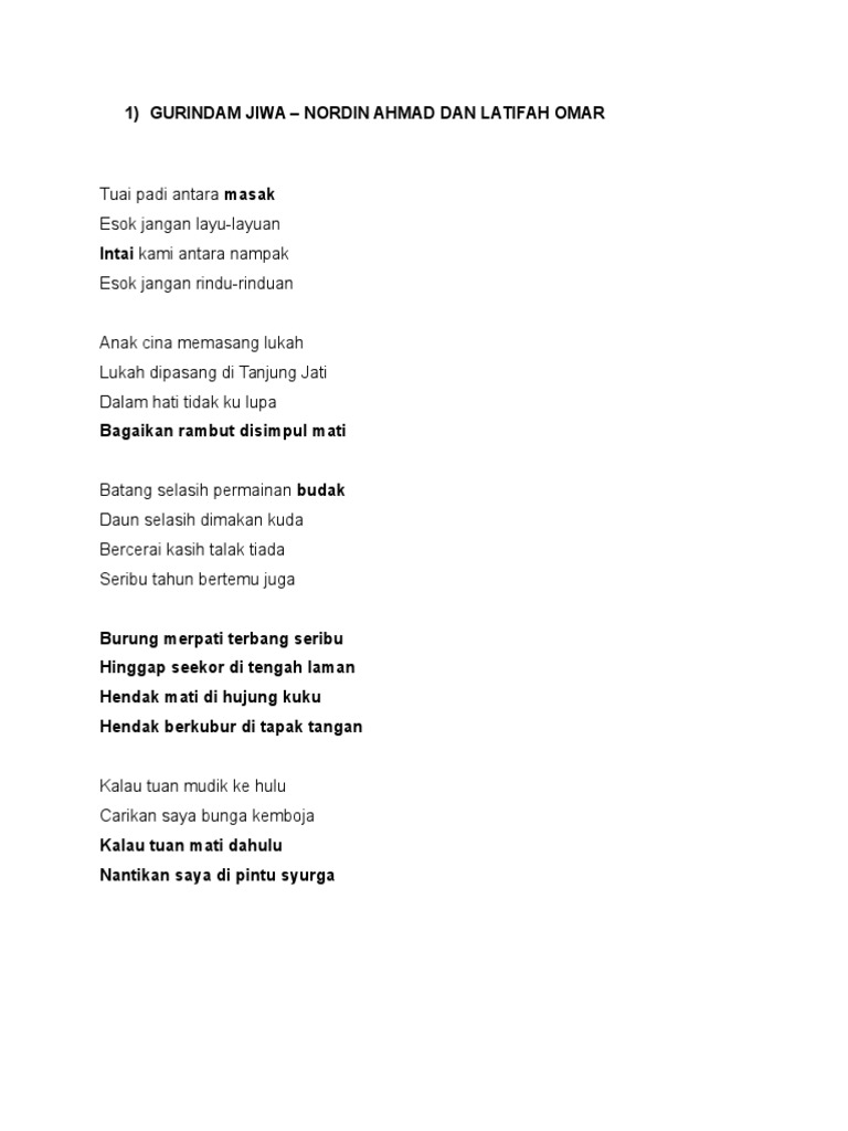 Gurindam Jiwa Nordin Ahmad Lirik No Youtube