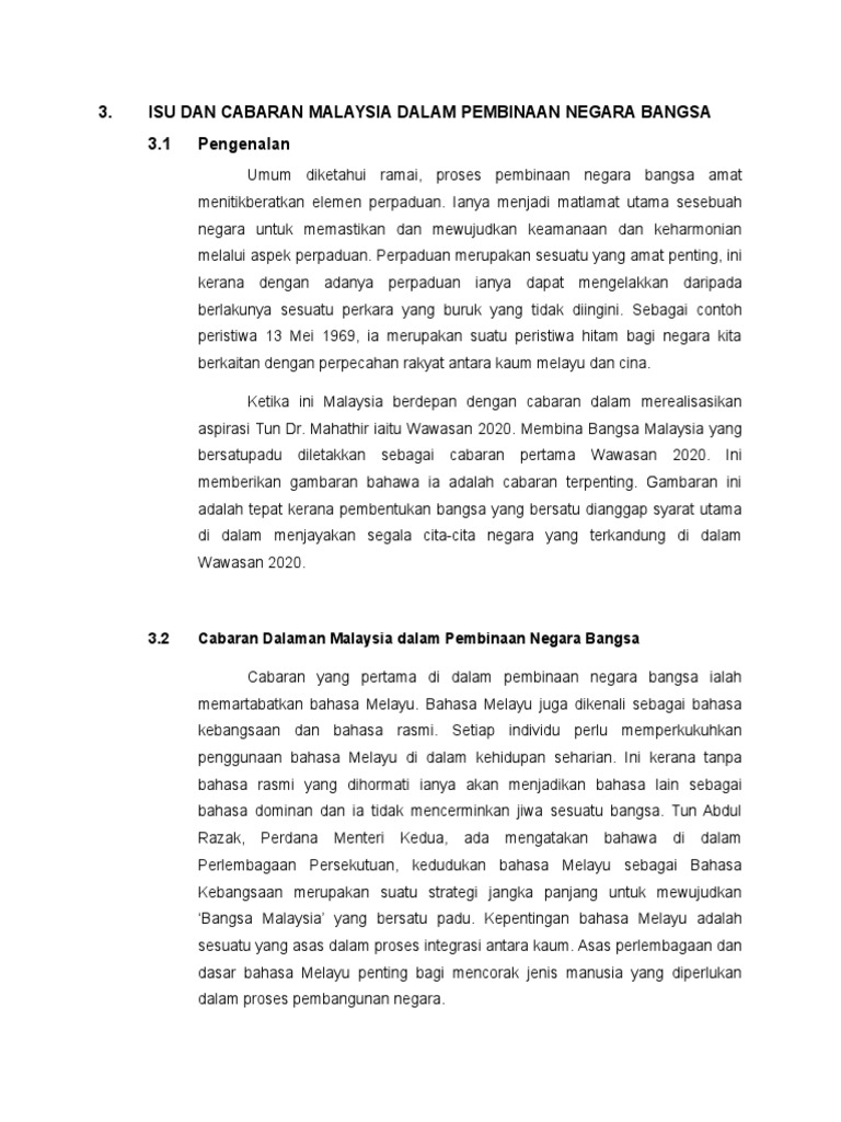 Cabaran Pembinaan Negara Bangsa Pada Masa Hadapan Di Malaysia