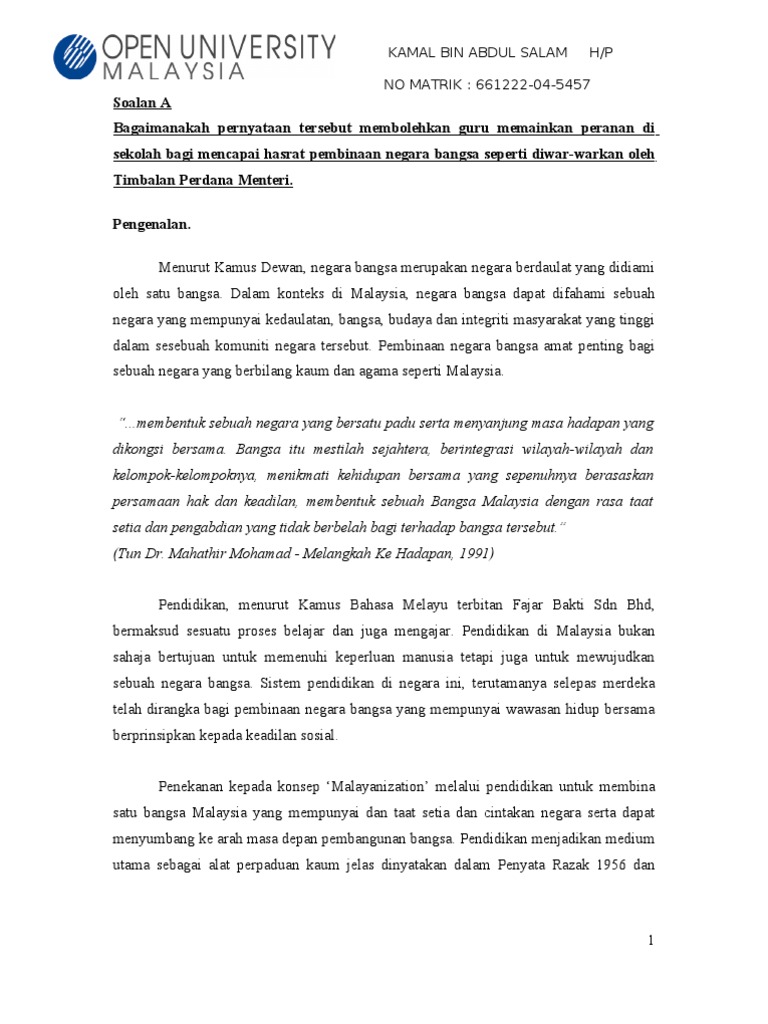 Assingments Pembinaan Negara Bangsa Malaysia Siap