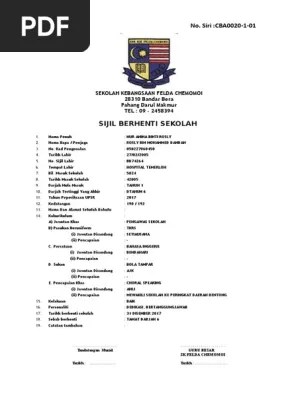 Sijil Berhenti Sekolah Menengah In English Kronis Q