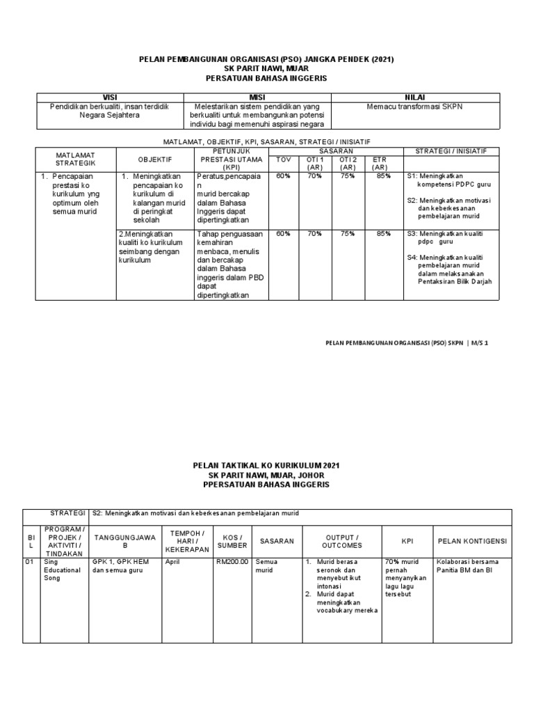 Pelan Strategik Panitia Bahasa Inggeris 2019 2021 Pdf