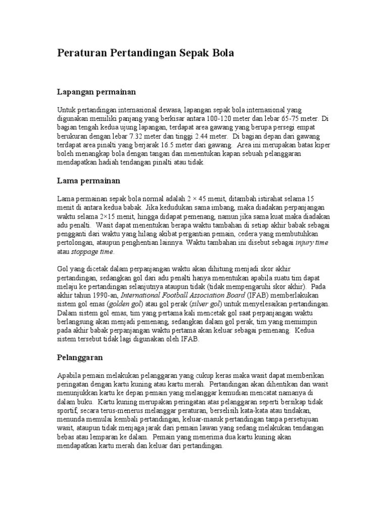 Peraturan Permainan Sepak Bola Secara Singkat Bpflash