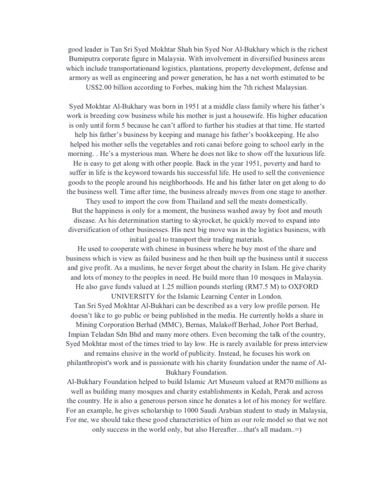 Mgt420 Leadership Tan Sri Syed Mokhtar Albukhary Studocu