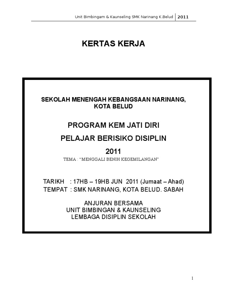 Kertas Kerja Kem Jati Diri Rohani Pelajar Islam Kaa
