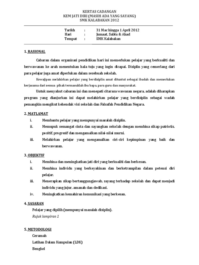 Doc Kertas Kerja Kem Kecemerlangan Sahsiah Diri Murid Sesi Petang Smk Bukit Rahman Putra 2014 Rashid Sarti Academia Edu