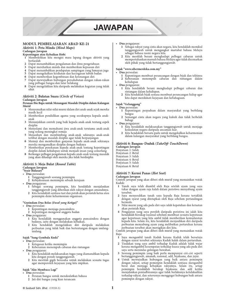 Jawapan Modul Aktiviti Pintar Bestari Bahasa Melayu Tingkatan 4