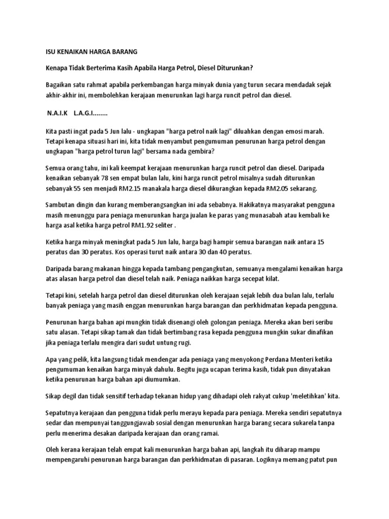 Karangan Punca Dan Kesan Kenaikan Harga Barang