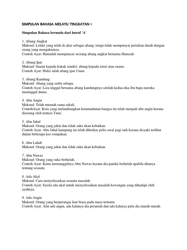 Simpulan Bahasa Melayu Tingkatan 1