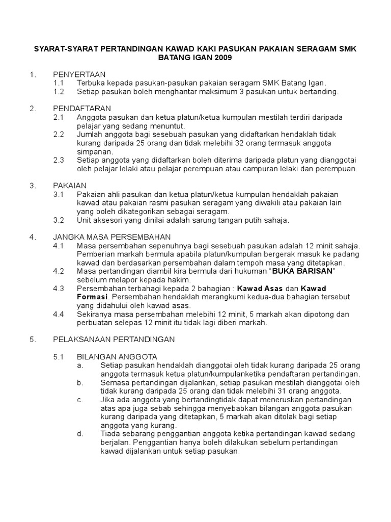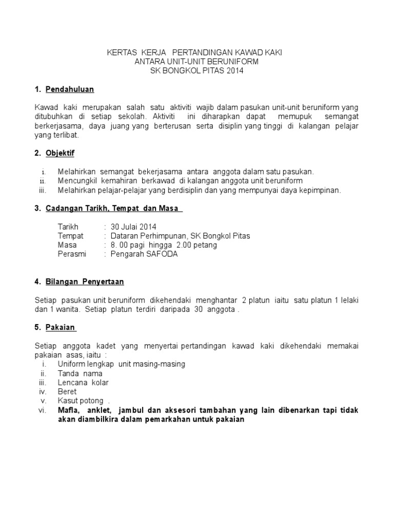 Kertas Kerja Pertandingan Kawad Kaki Antara Unit Beruniform