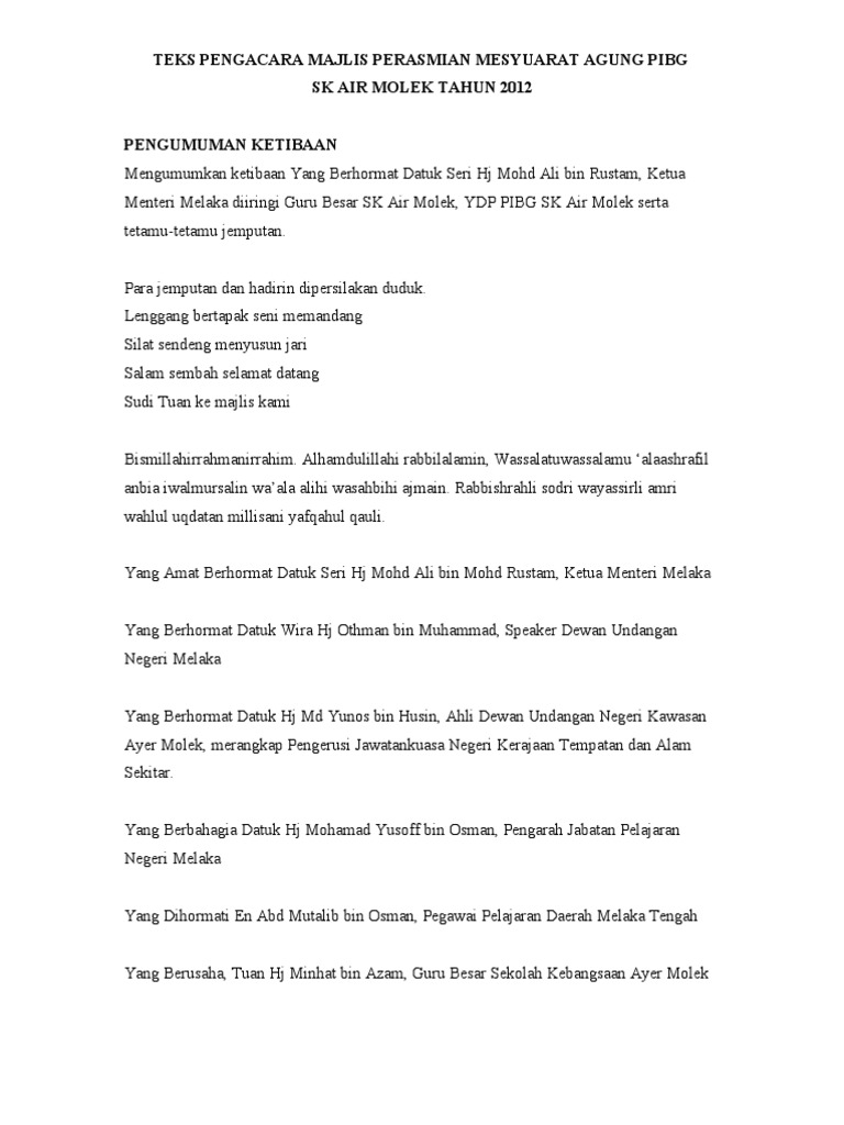 Teks Ucapan Ydp Pibg Sempena Mesyuarat Agung Pibg Smk Pernu Kali Ke Pdf