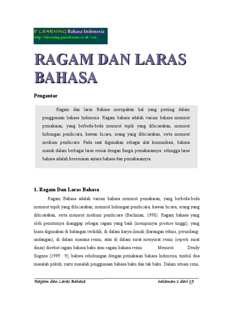 Bahasa Indonesia 1 Ragam Dan Laras Bahasa Ragam