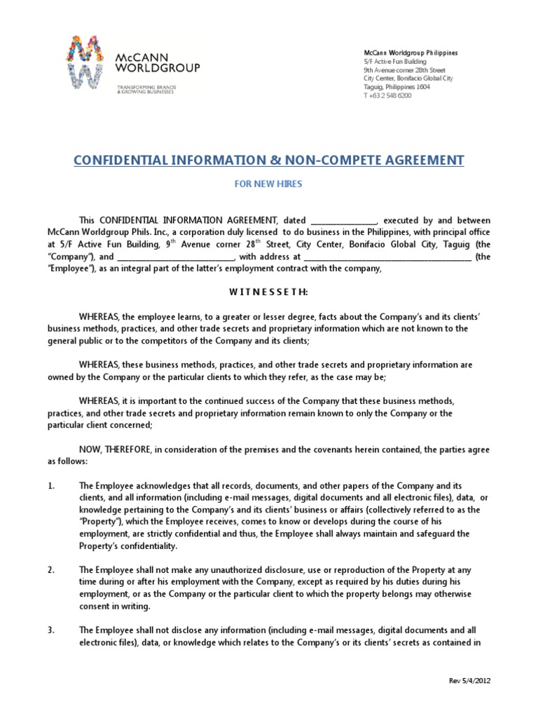 Non Disclosure Agreement Sample For Employees Philippines