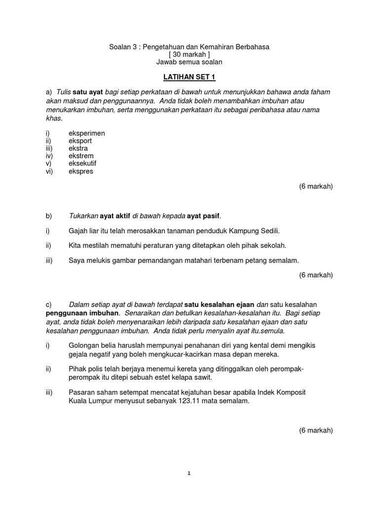 Soalan 3 Pengetahuan Dan Kemahiran Bahasa Set 1