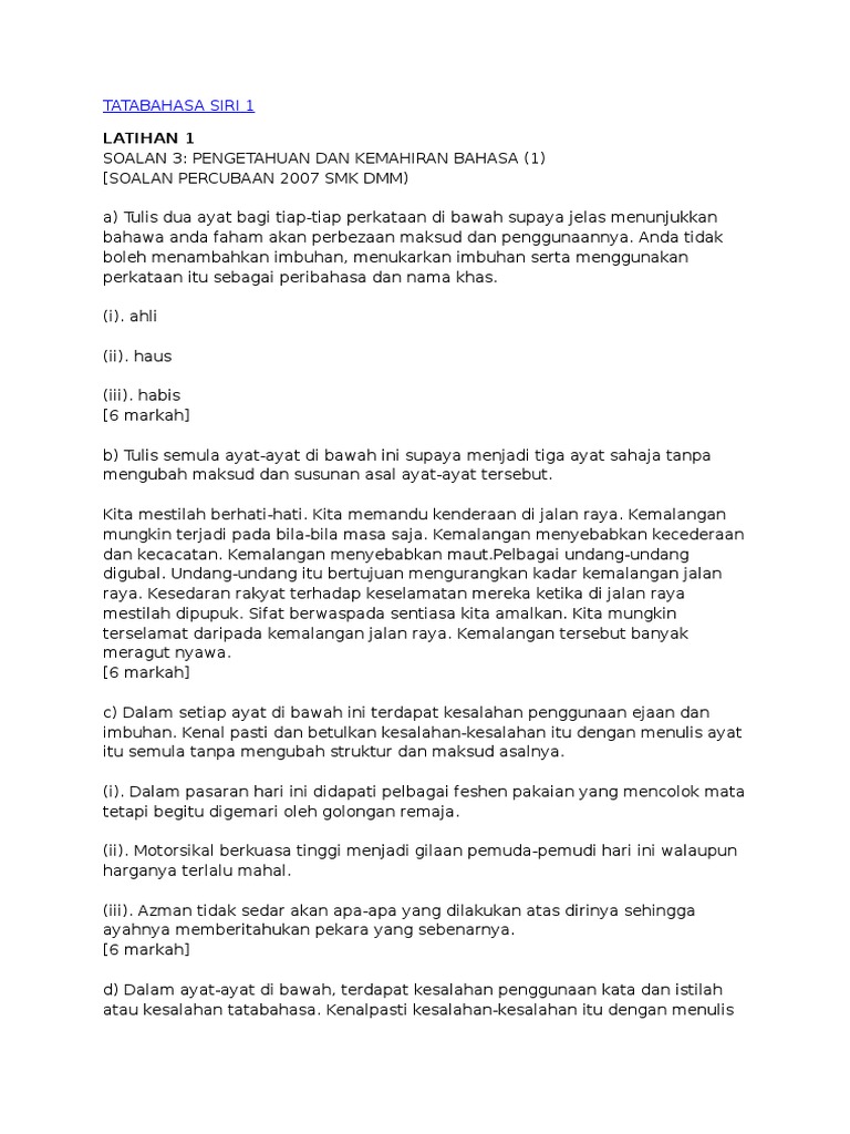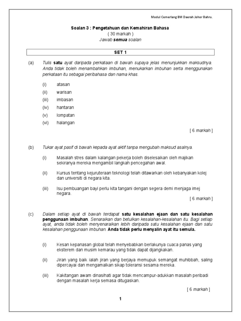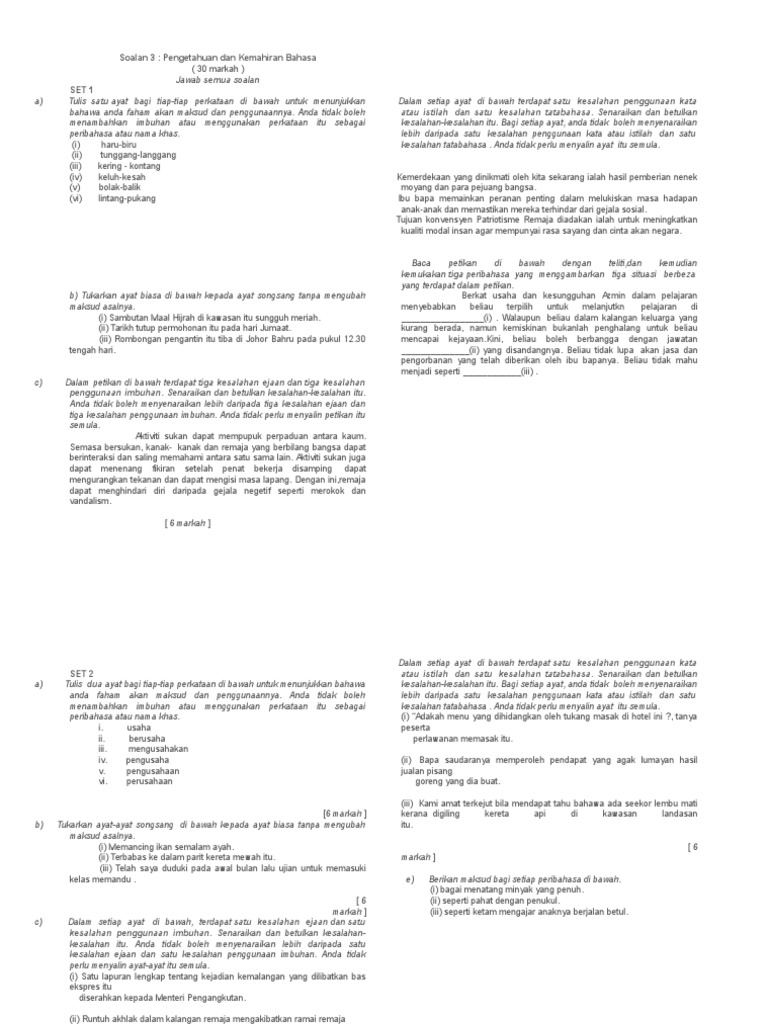 Soalan 3 Pengetahuan Dan Kemahiran Bahasa Spm Bm Kertas 1 Dan 2